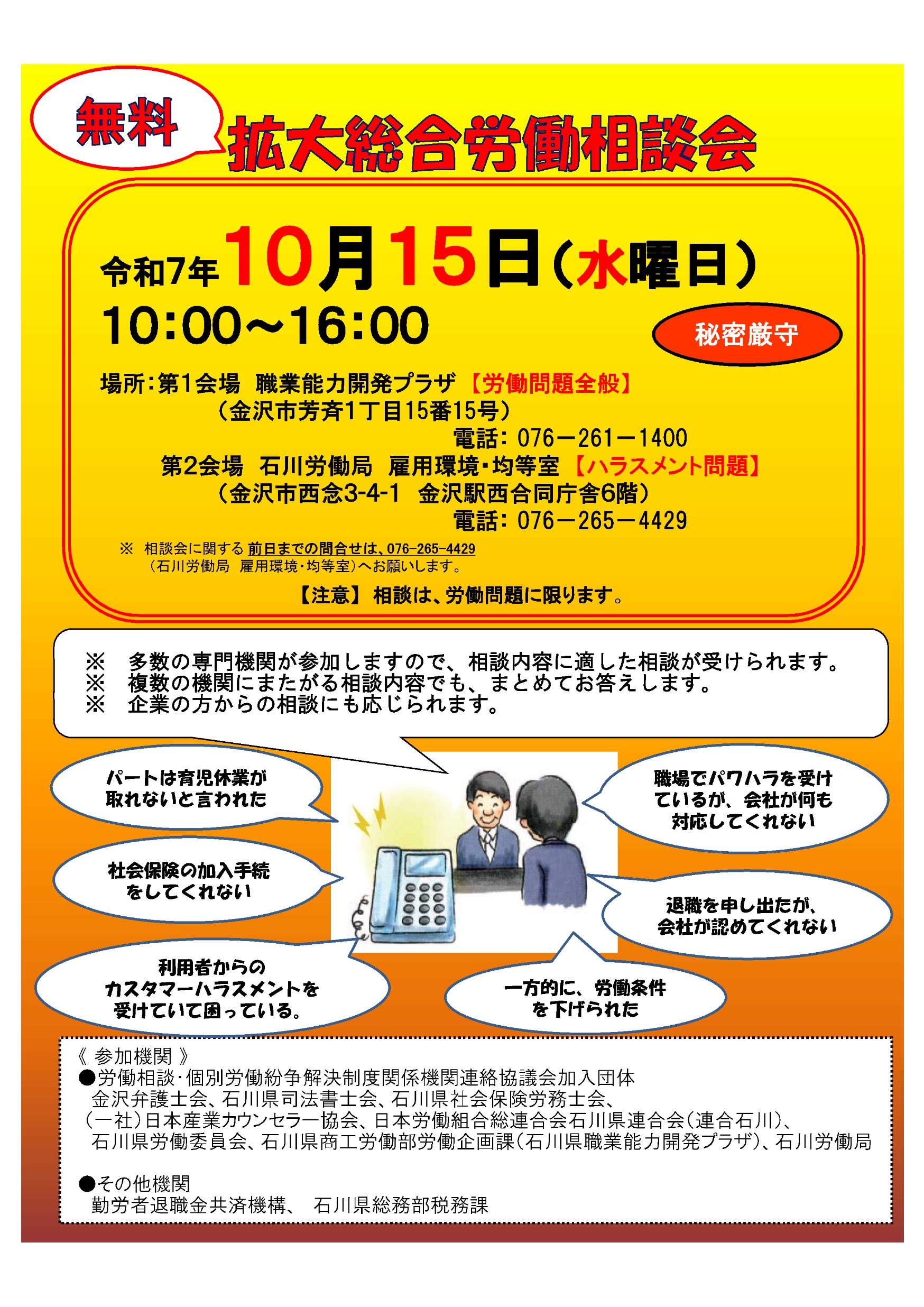 【石川労働局】いしかわ労働相談強化月間・拡大総合労働相談会等の周知