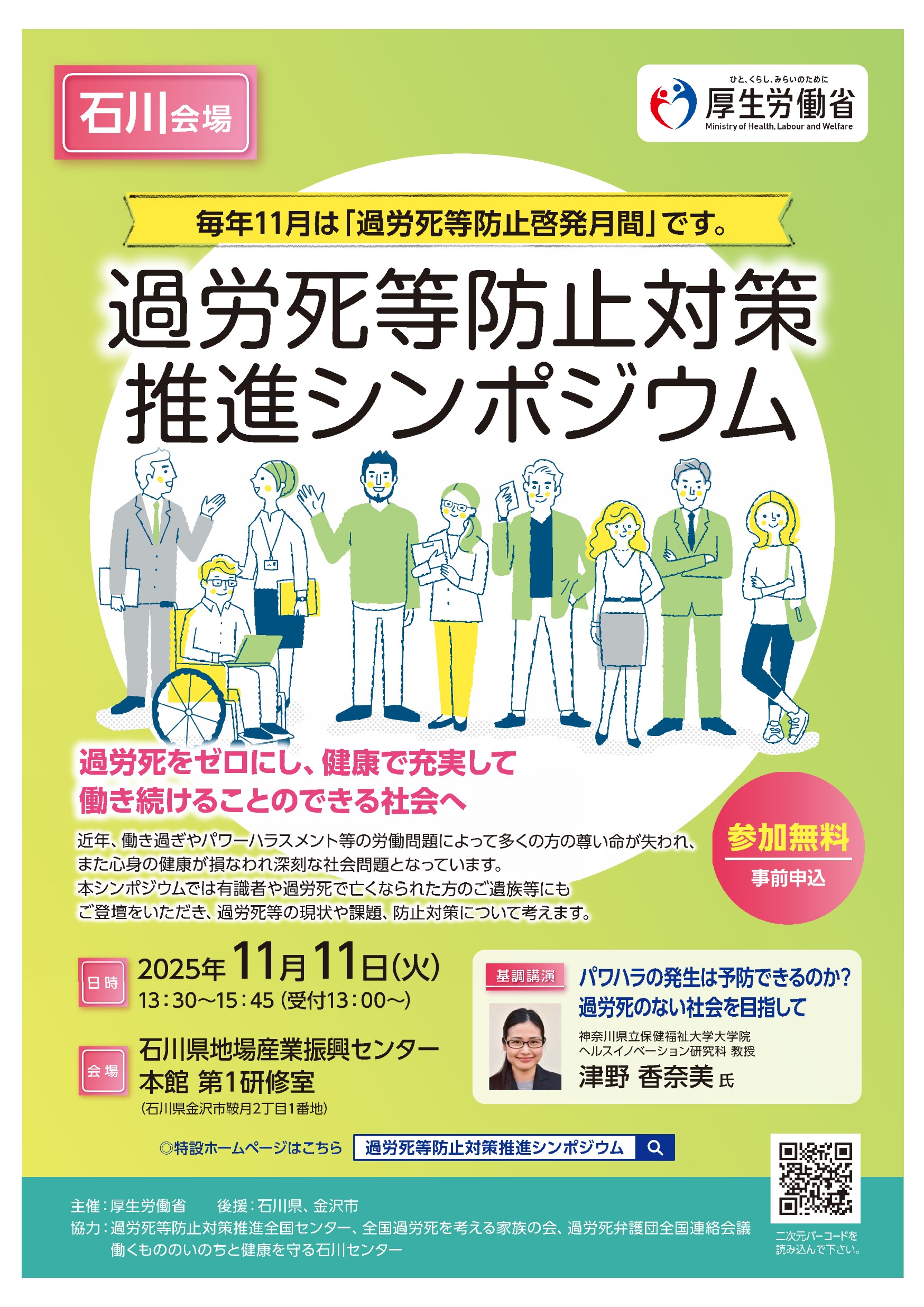この度、厚生労働省では、国民の間に広く過労死等とそれを防止することの重要性について関心と理解を深めていただくよう過労死等防止啓発月間である11月を中心に全国48カ所で「過労死等防止対策推進シンポジウム」を開催いたします。