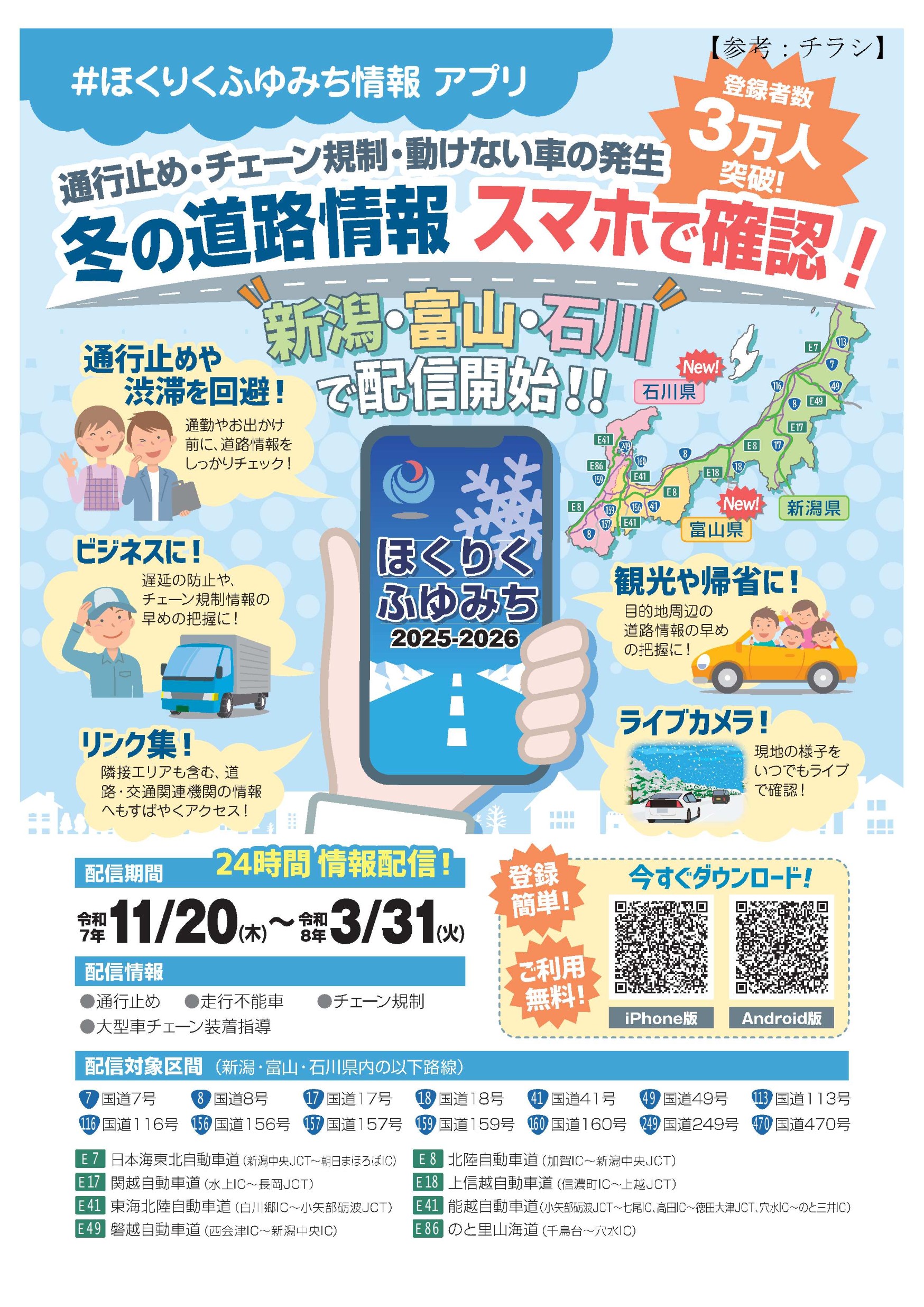 【金沢河川国道事務所からのお知らせ】ほくりくふゆみち情報アプリ 石川・富山・新潟で配信開始!