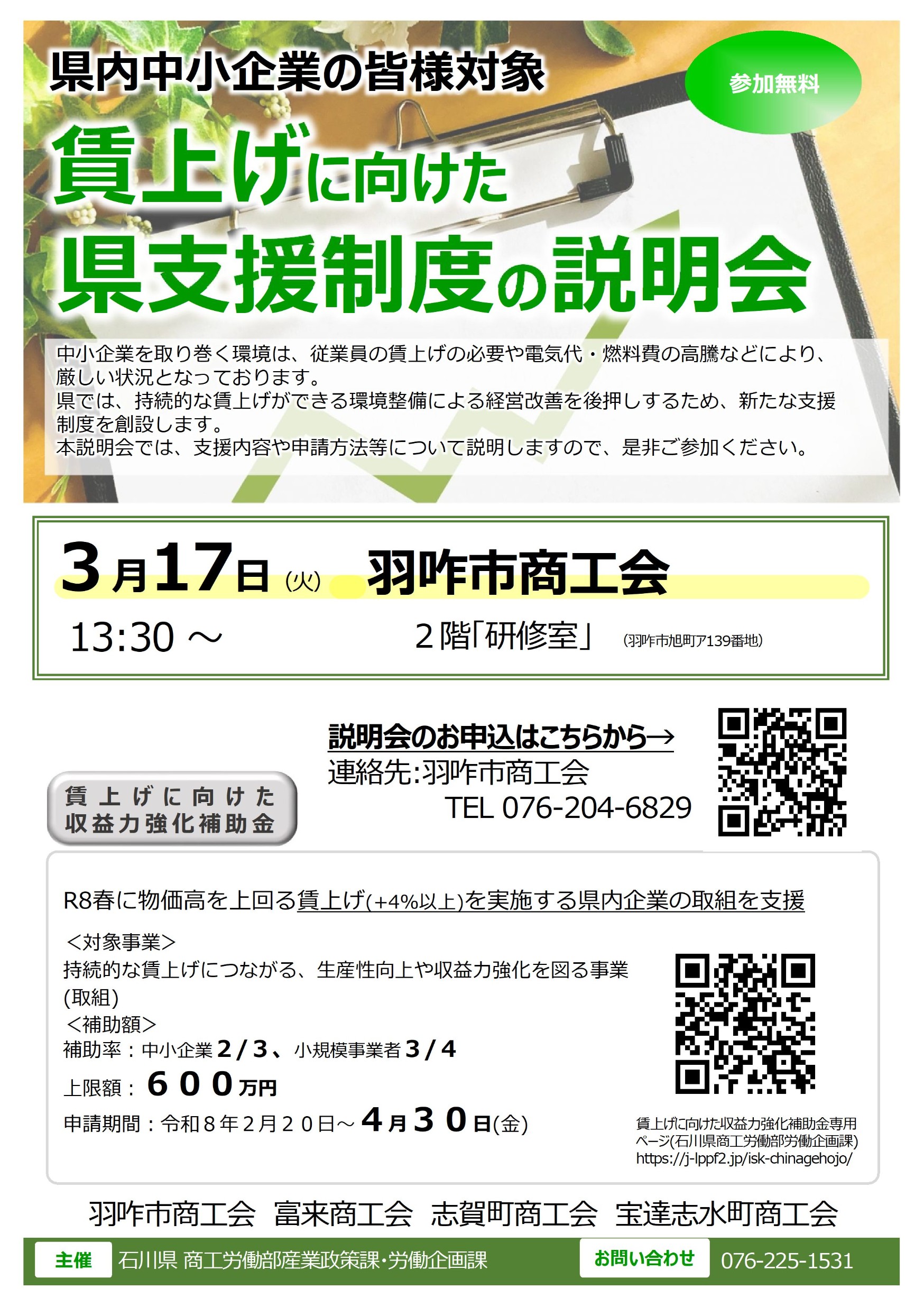 【3/17(火)】賃上げに向けた県支援制度の説明会